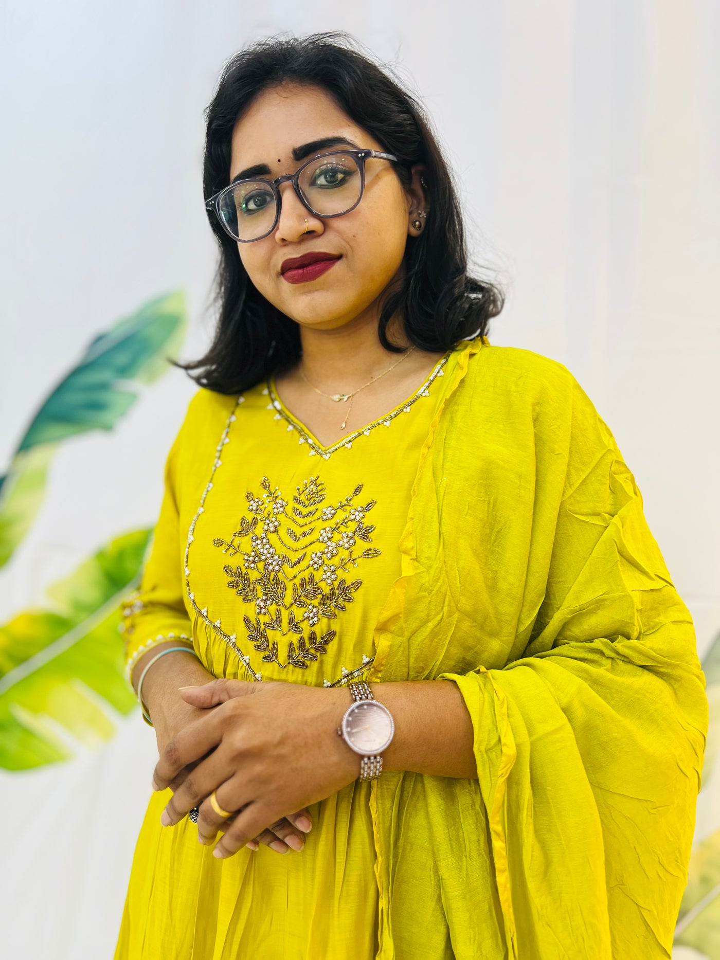Radiate festive charm with this stunning sunshine yellow Anarkali set, designed to brighten up every occasion. The outfit features a flowy silhouette crafted from soft, breathable fabric that drapes gracefully, offering both elegance and comfort.
