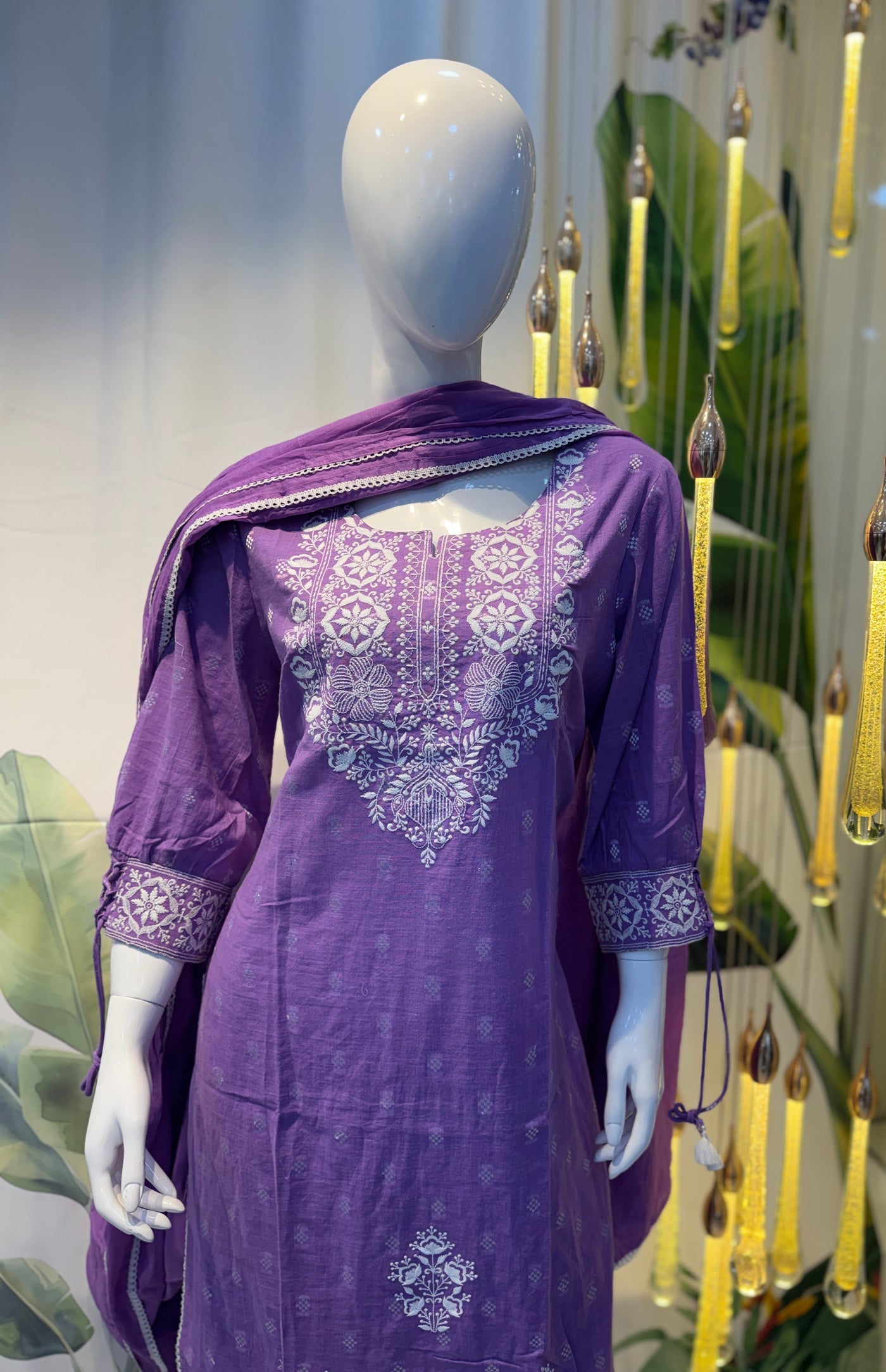 Purple Embroidered Cotton Kurta Set